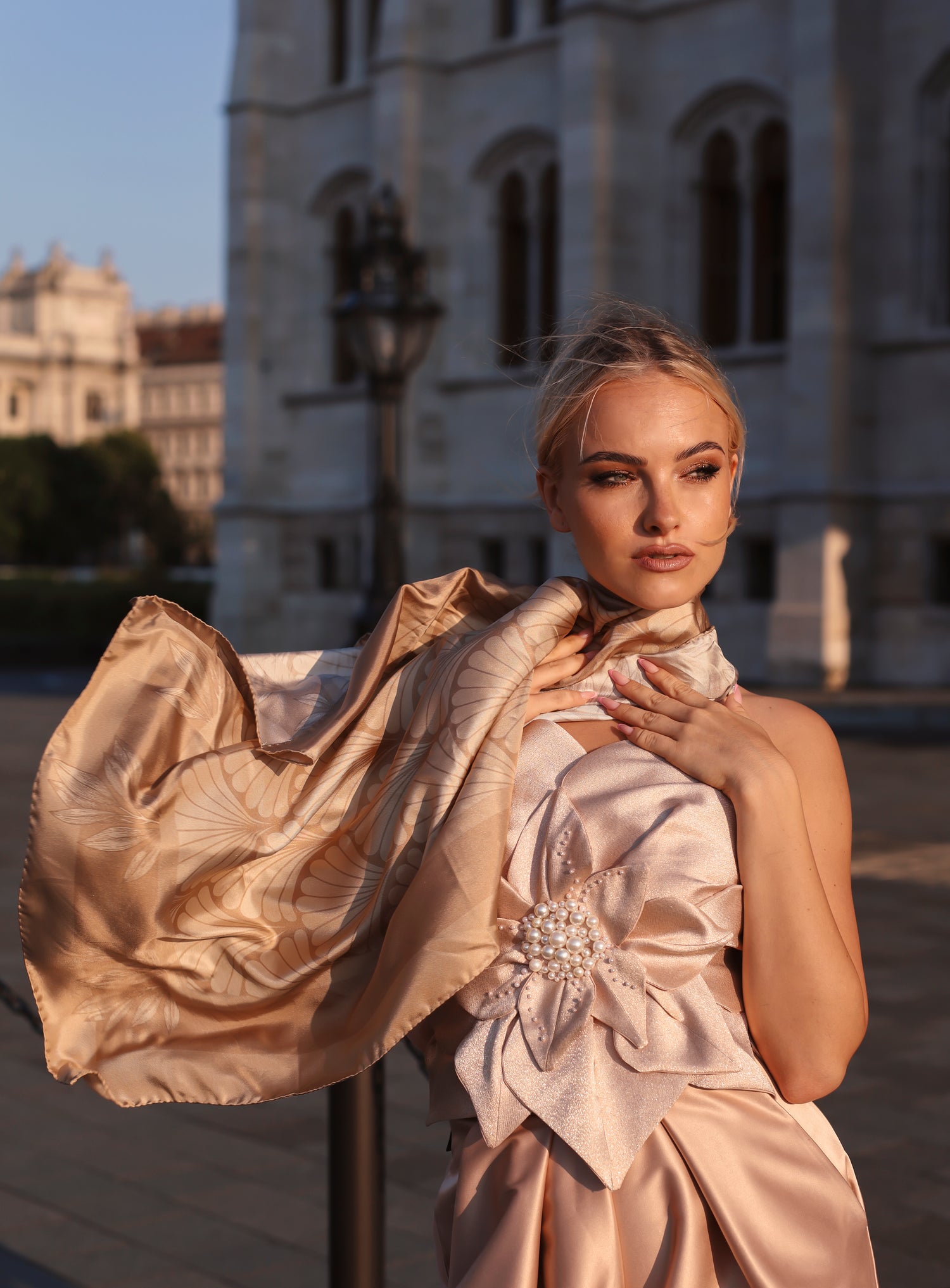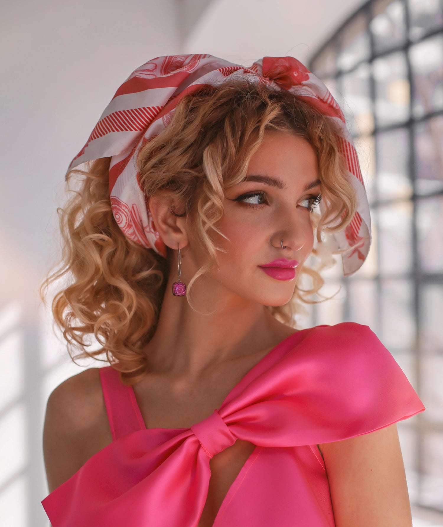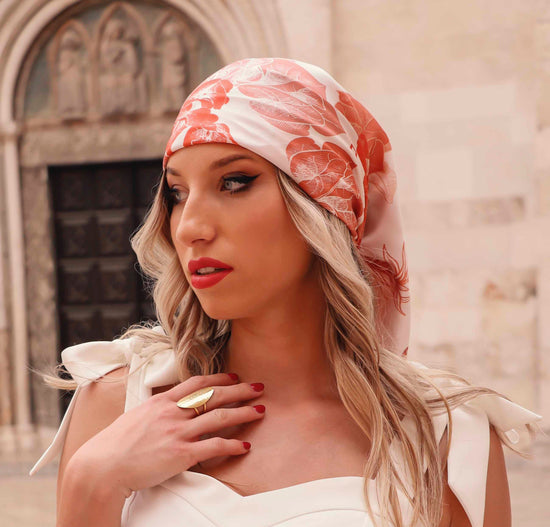 The concepts of silk accessories are created with free hand drawing and digital illustration, which are then manufactured in Como, Italy.