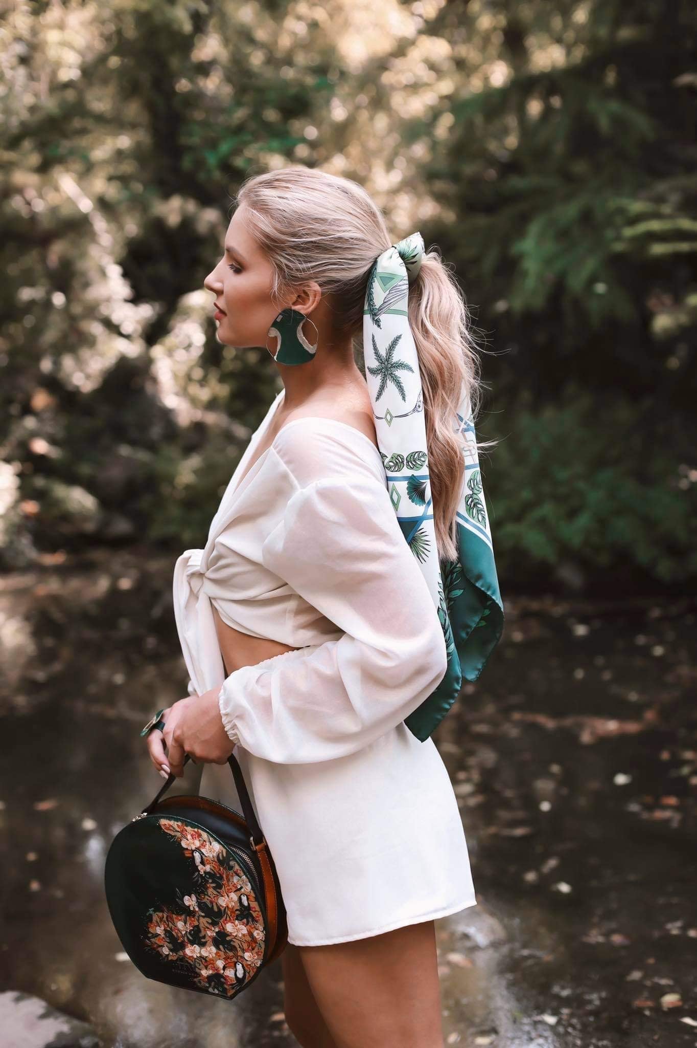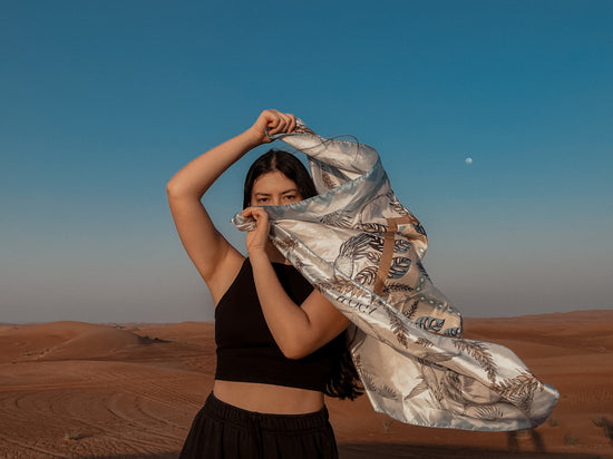 Add more to your outfit effortlessly with a scarf by wrapping around your neck, tying on your head, draping over the shoulders, putting in your ponytail, wearing as a bandeau top or even as a belt. Use it for all occasions and for any season.